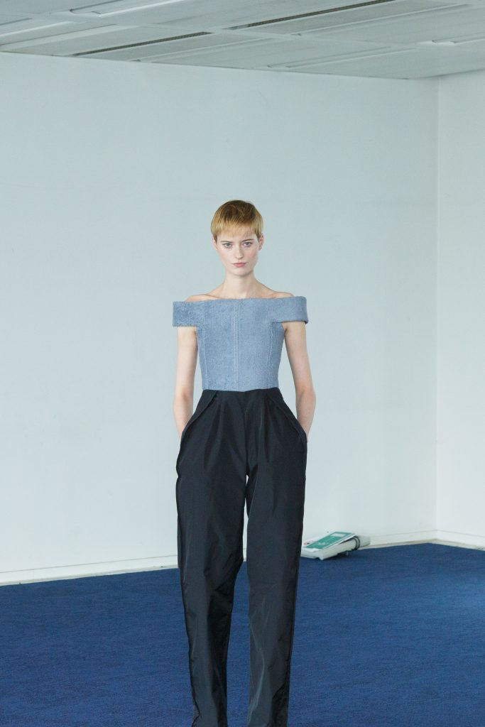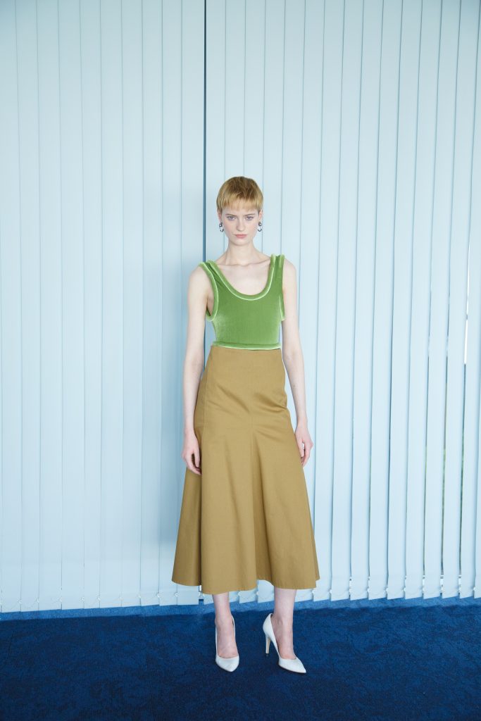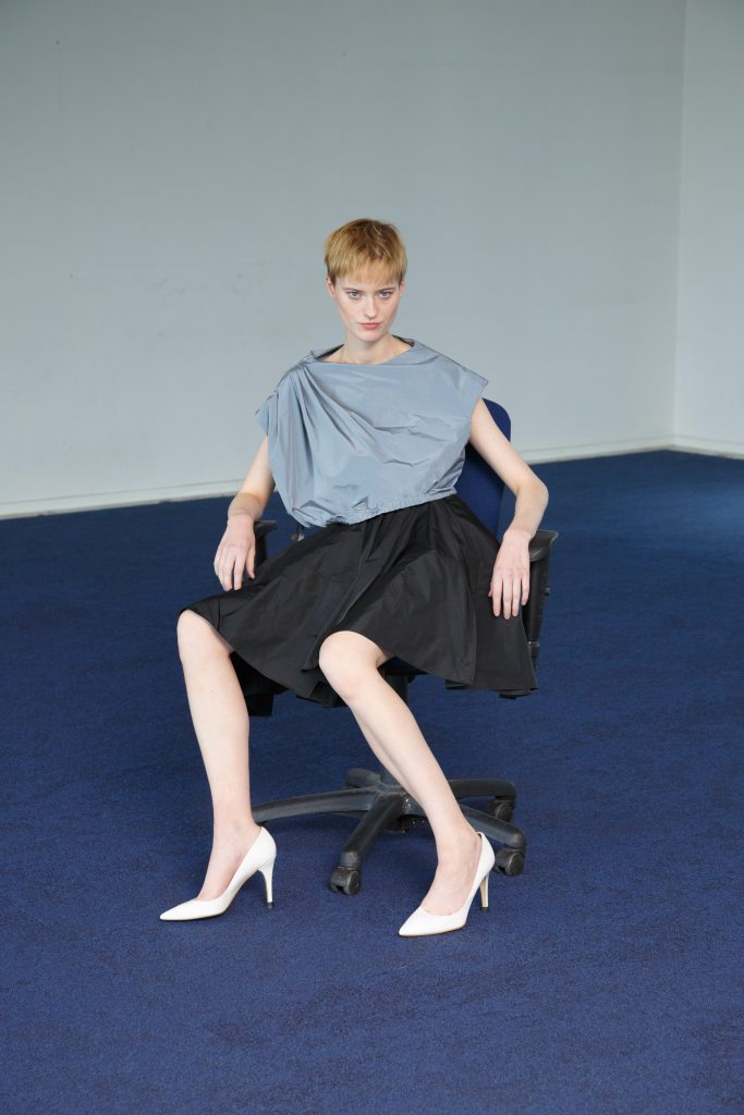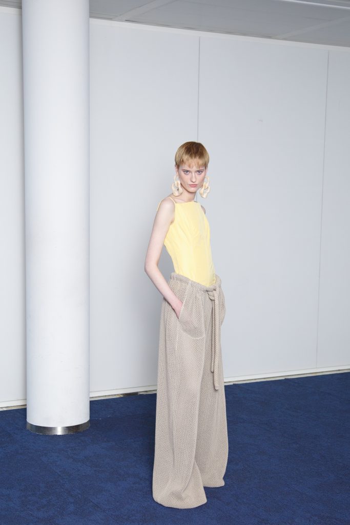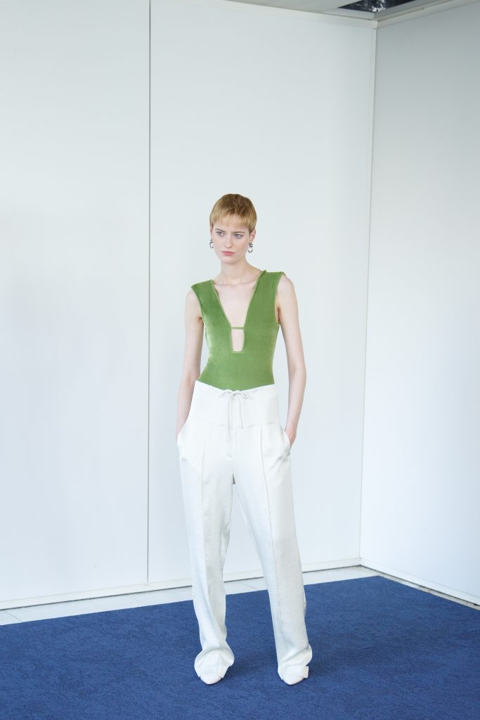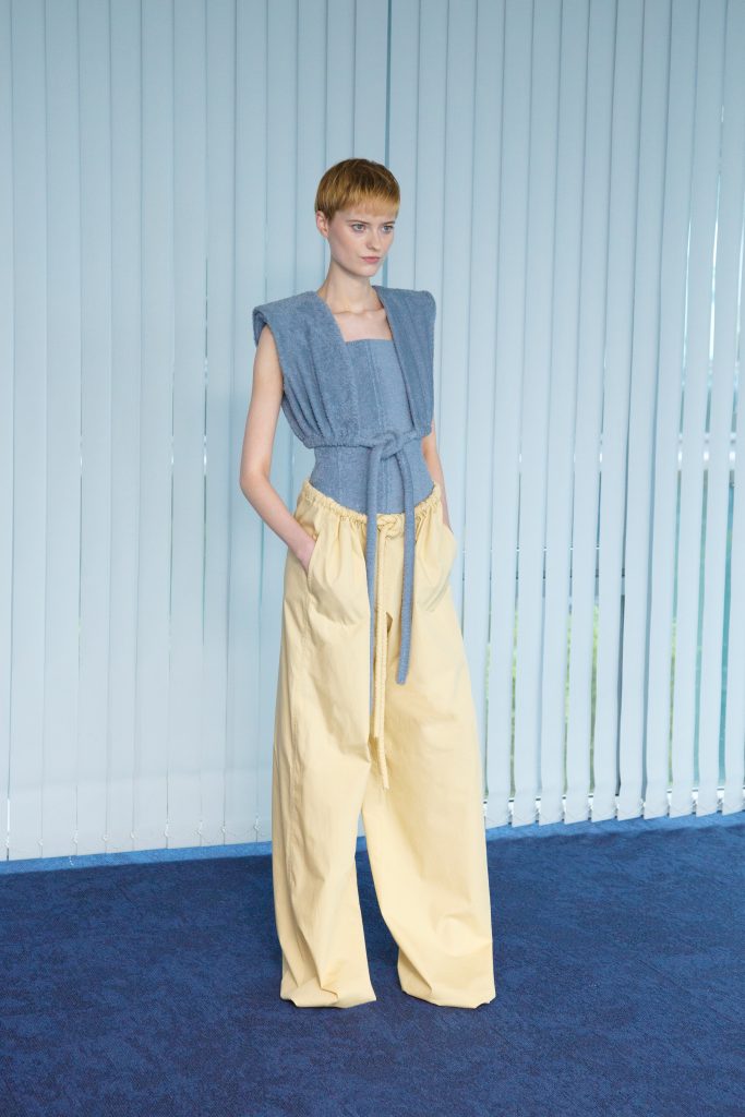 Véronique Leroy creuse le sillon de ses matières révérées – l’éponge, la résille, le taffetas bouillonné, la gabardine de coton. Les maillots ne sont pas seulement des maillots, les body et les culottes bouffantes n’ont plus. Les épaules s’affichent, graphiques. Les manches se font ballon. Les gilets s’offrent des excroissances.