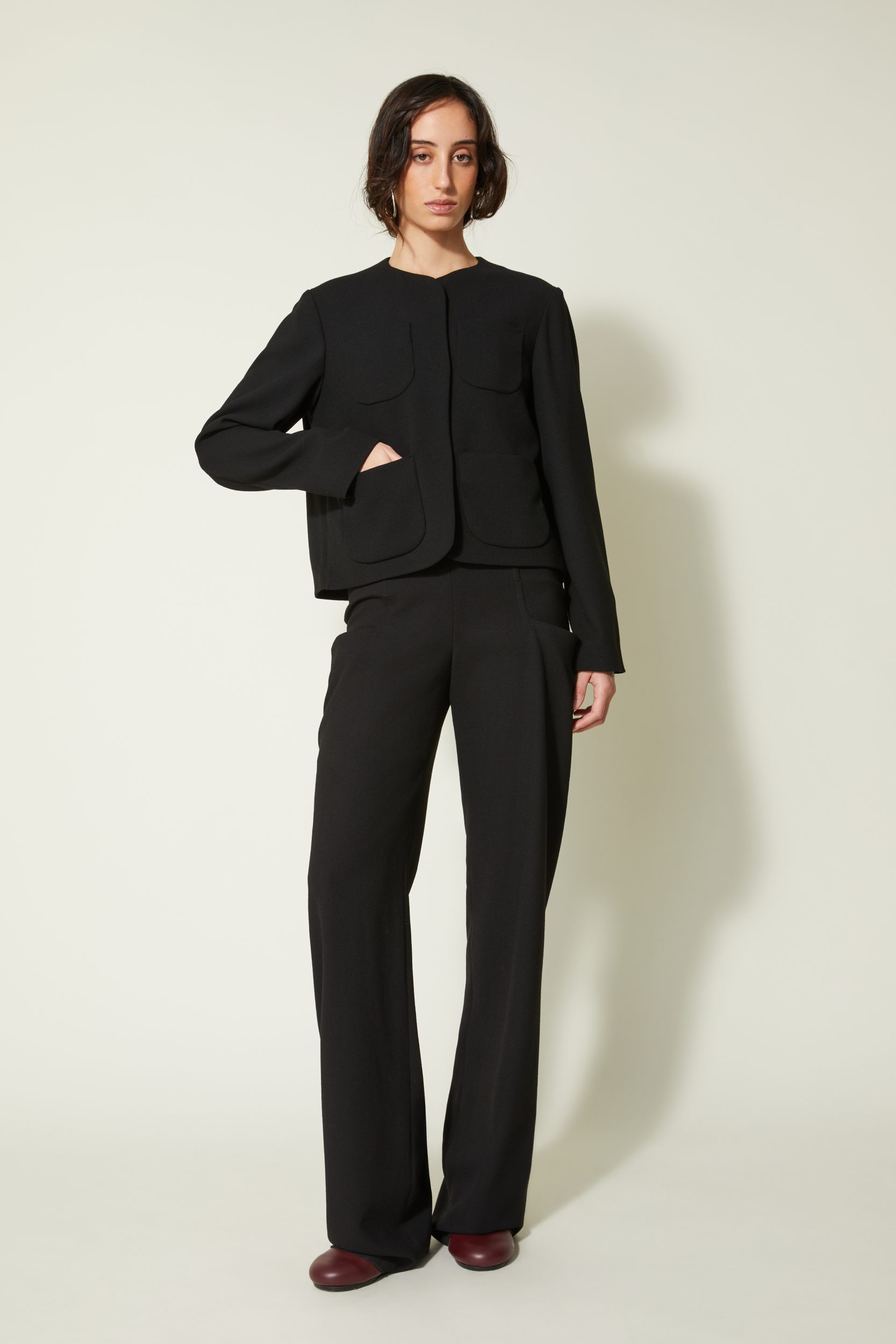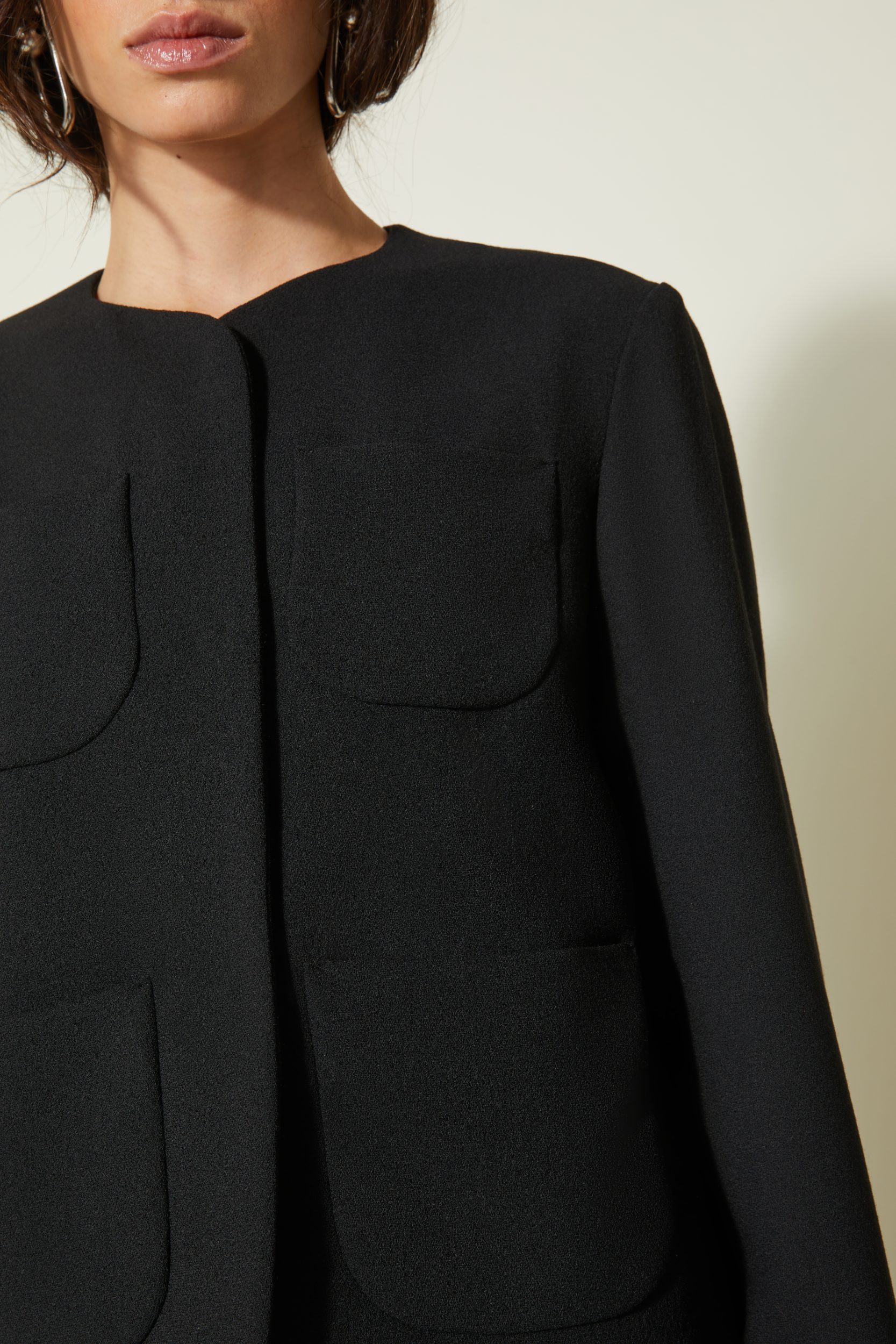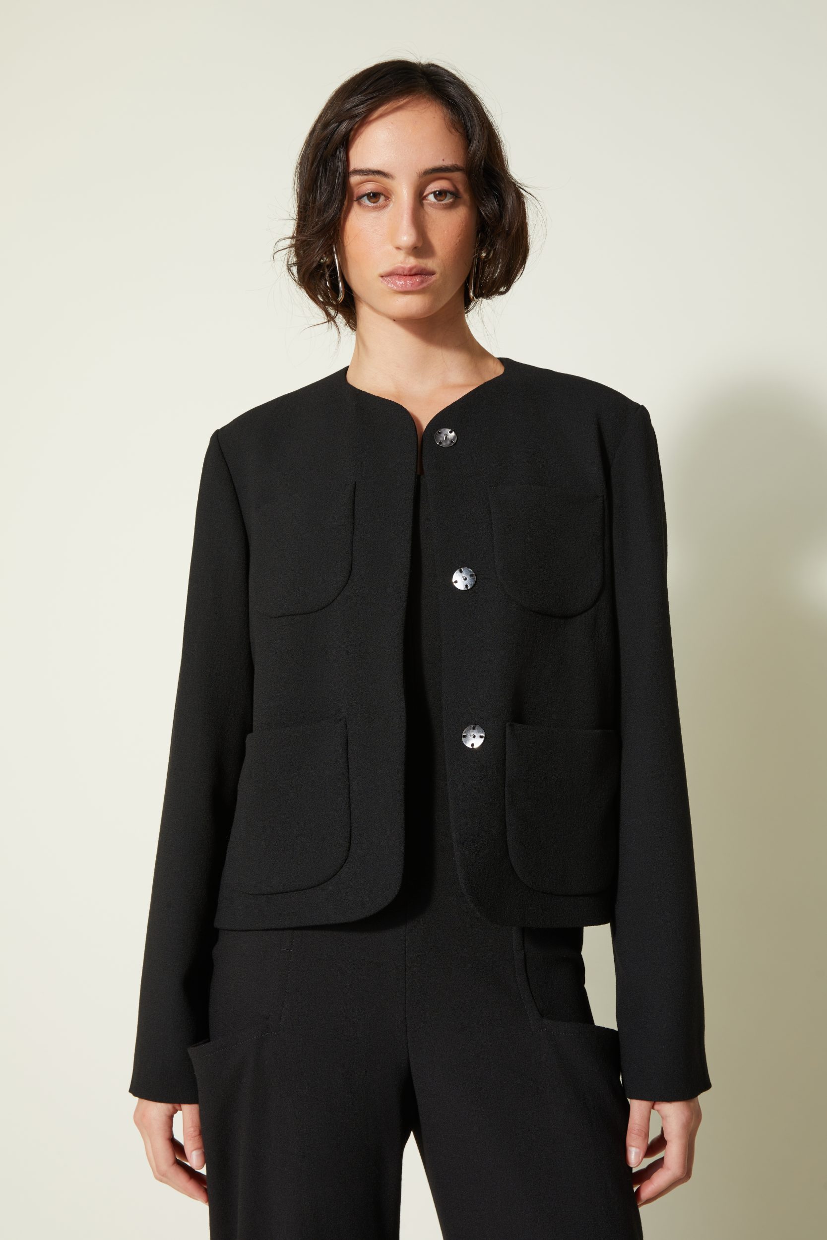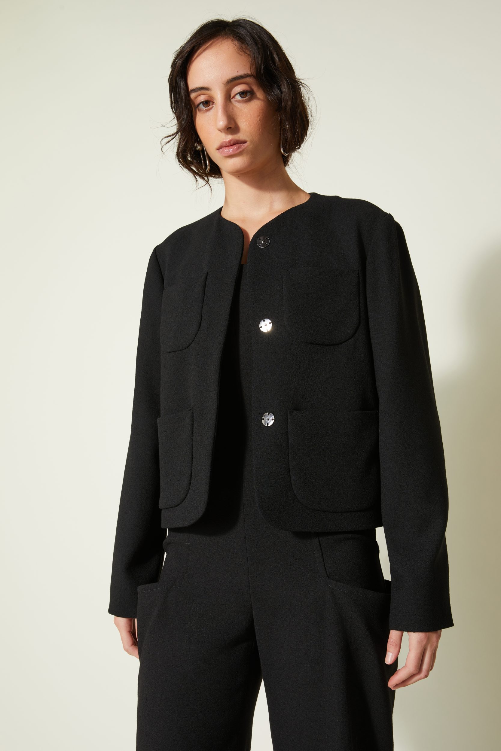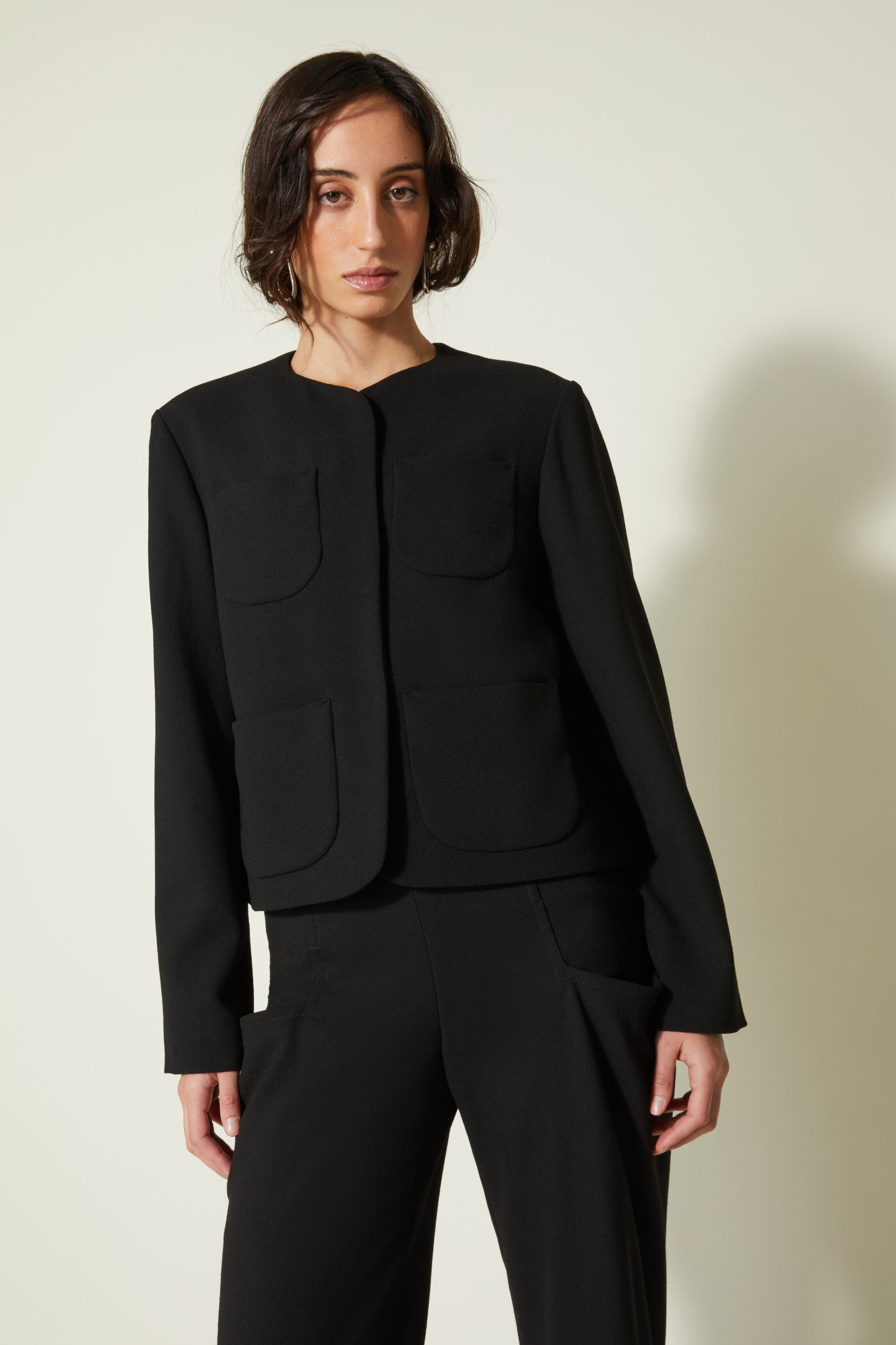 Collarless Jacket — 4 patch pockets — Button fastening — Long set-in sleeves