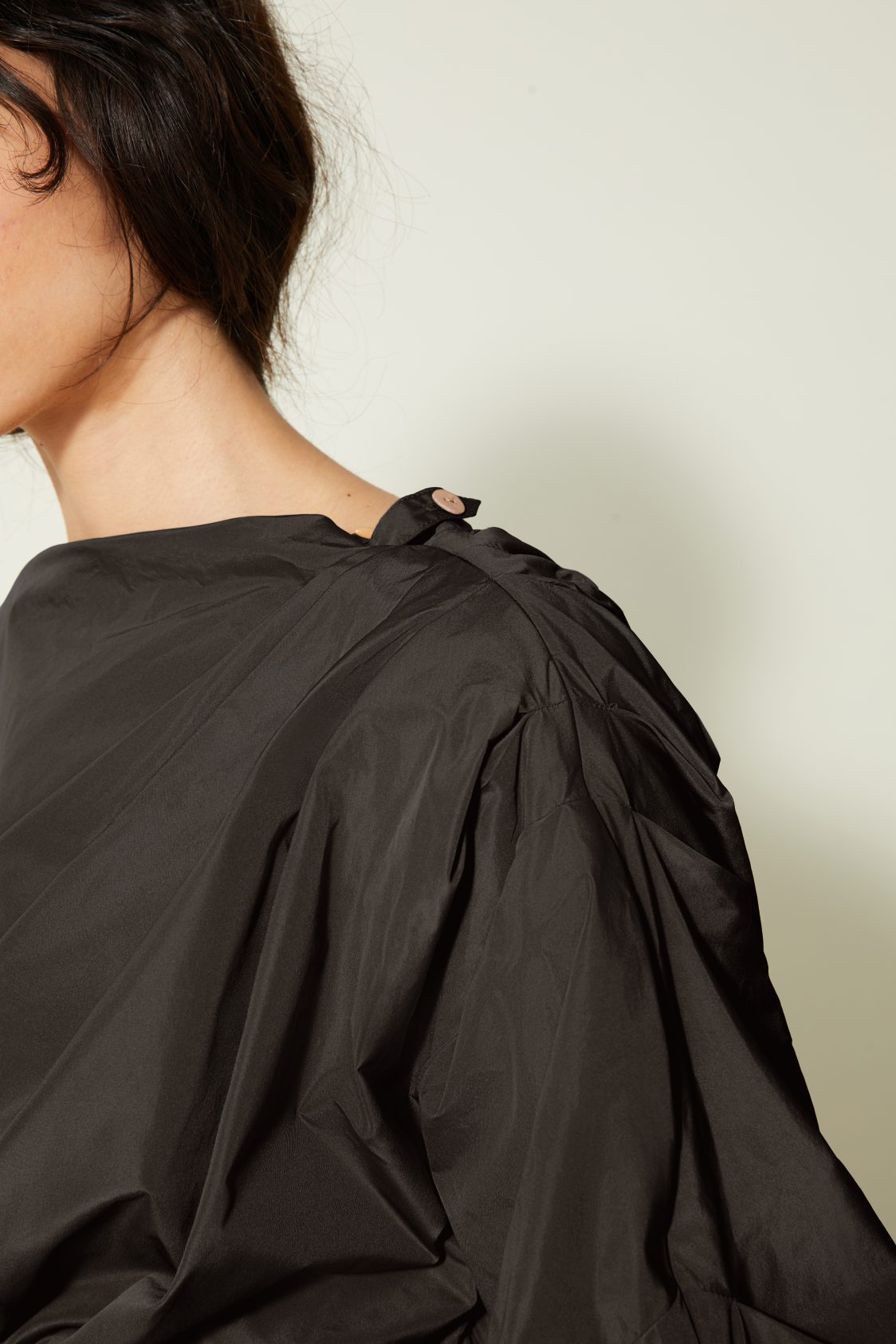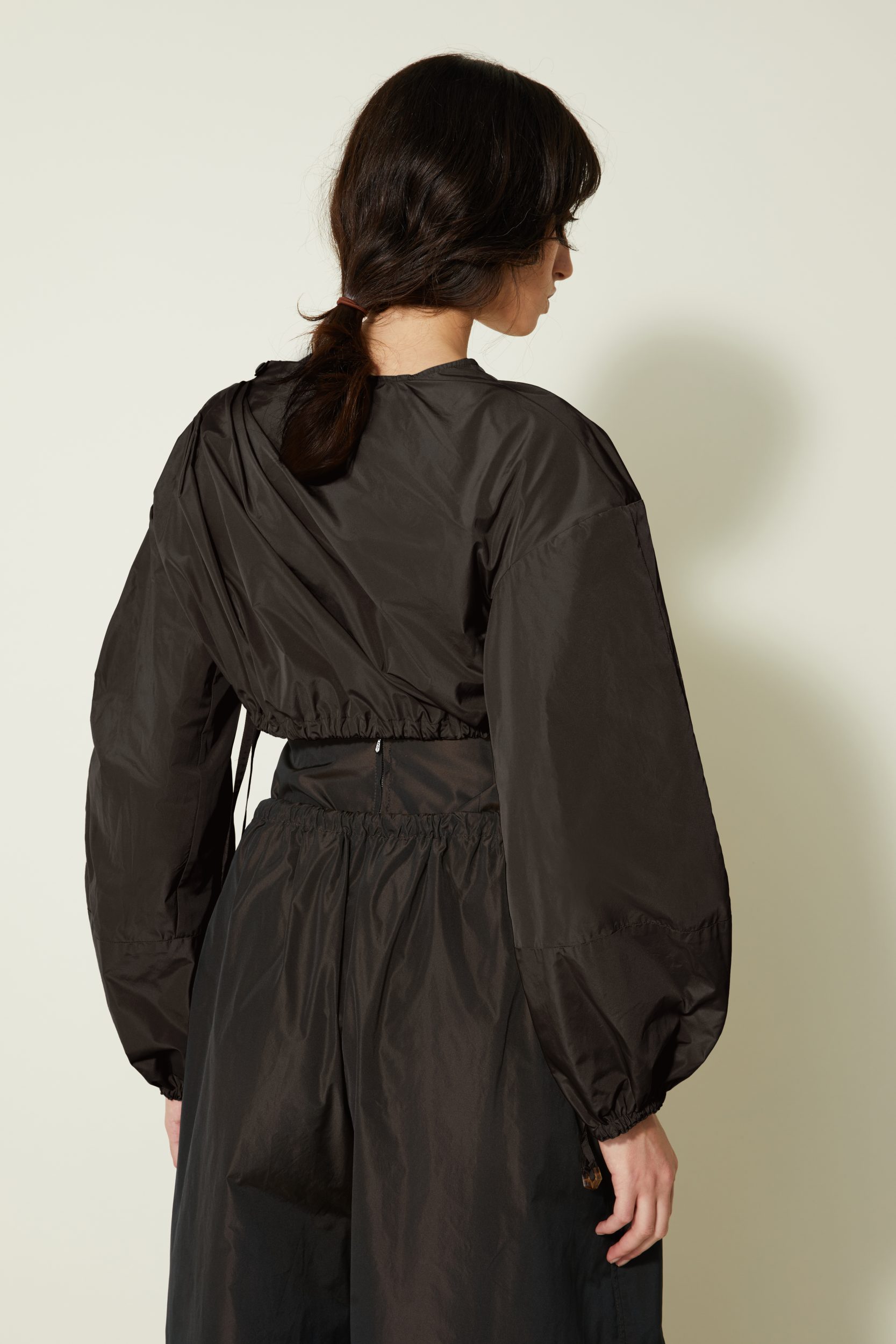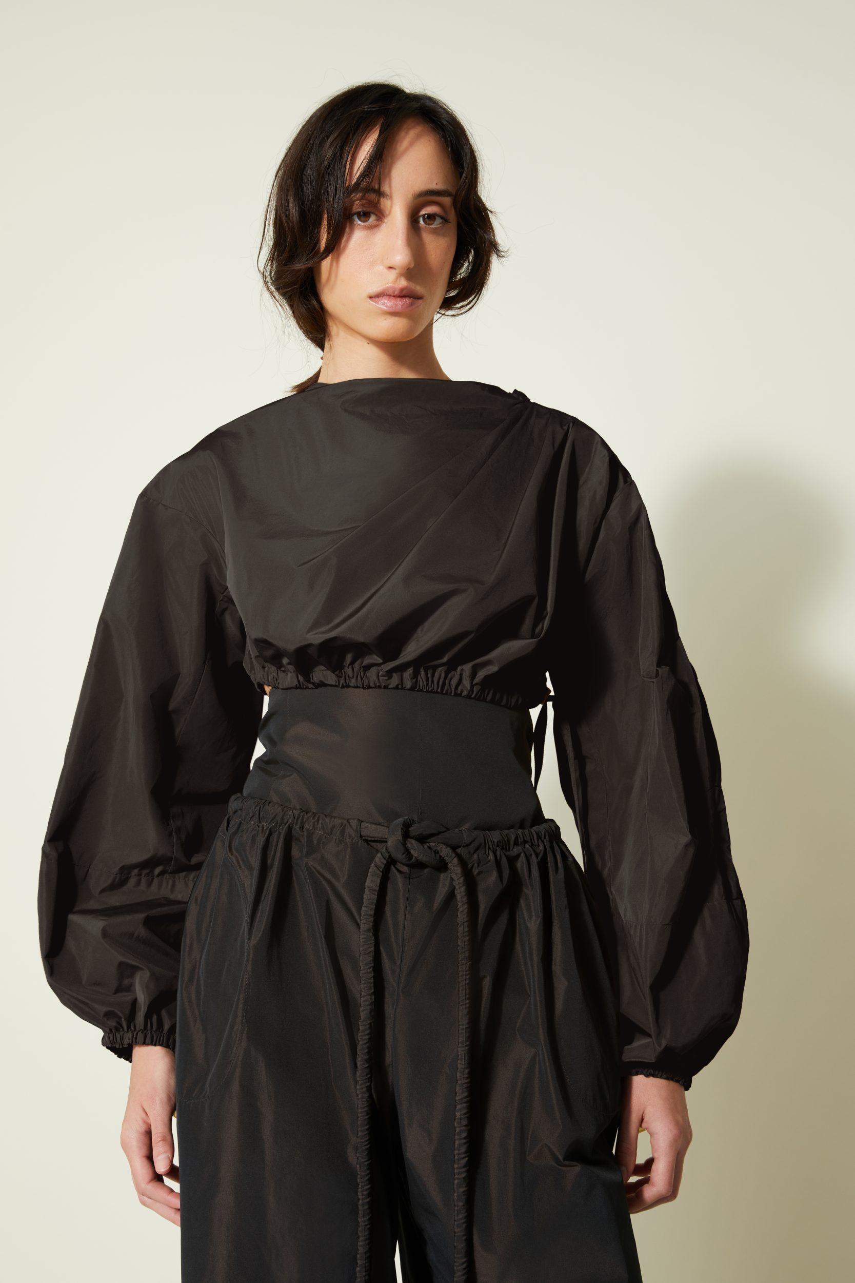 A more dressed-up, luxurious cropped version of our signature draped top, crafted here from a nylon taffeta.