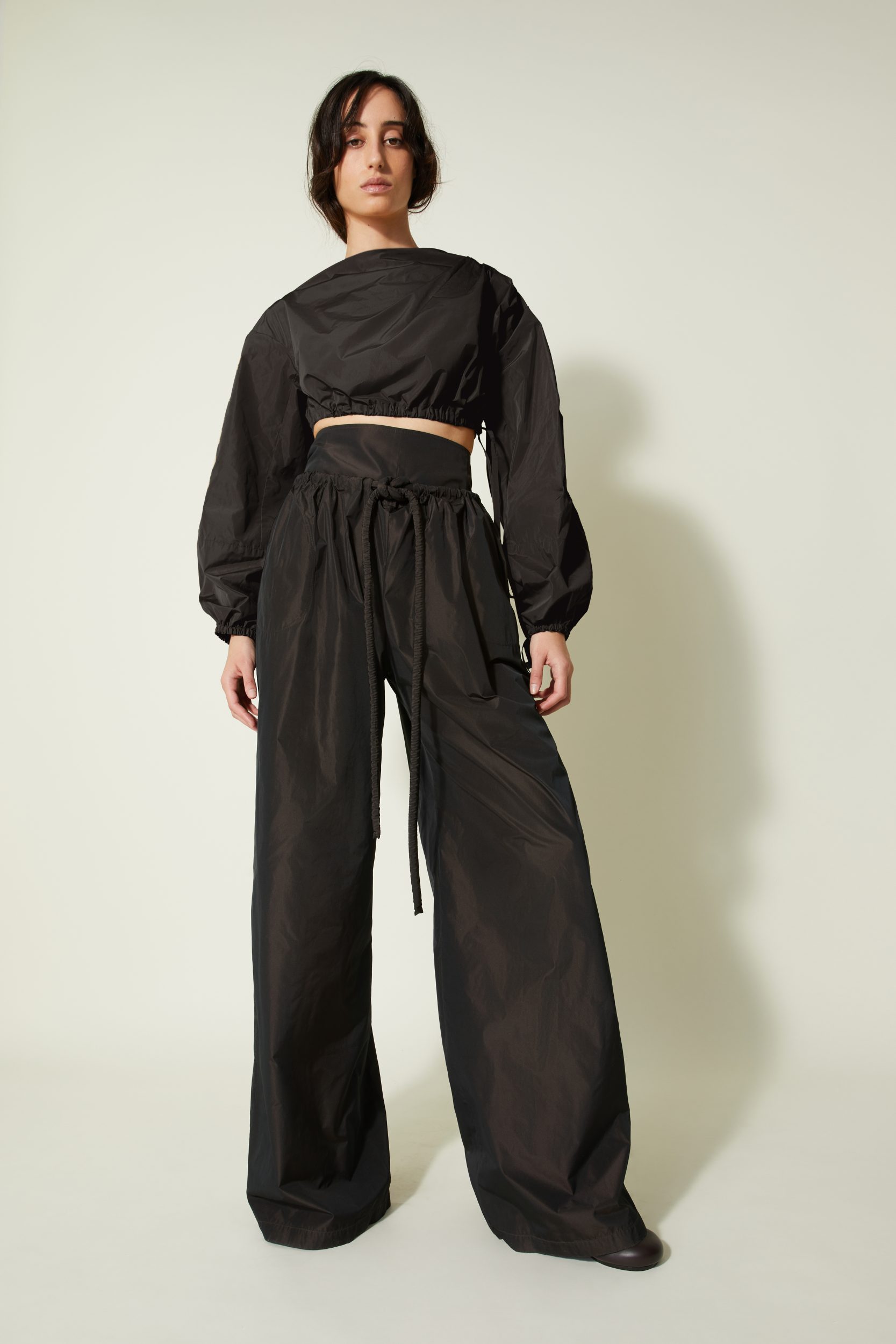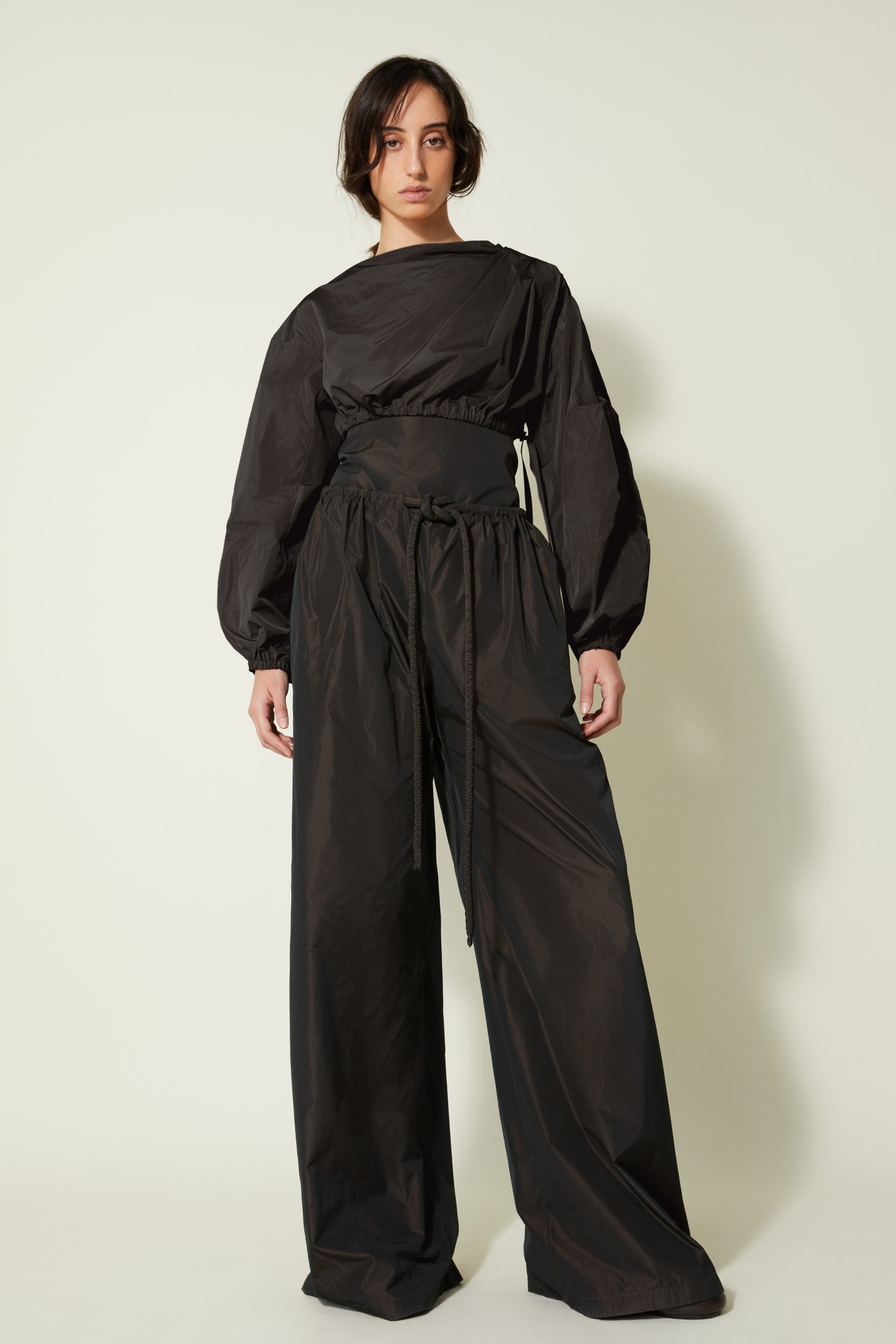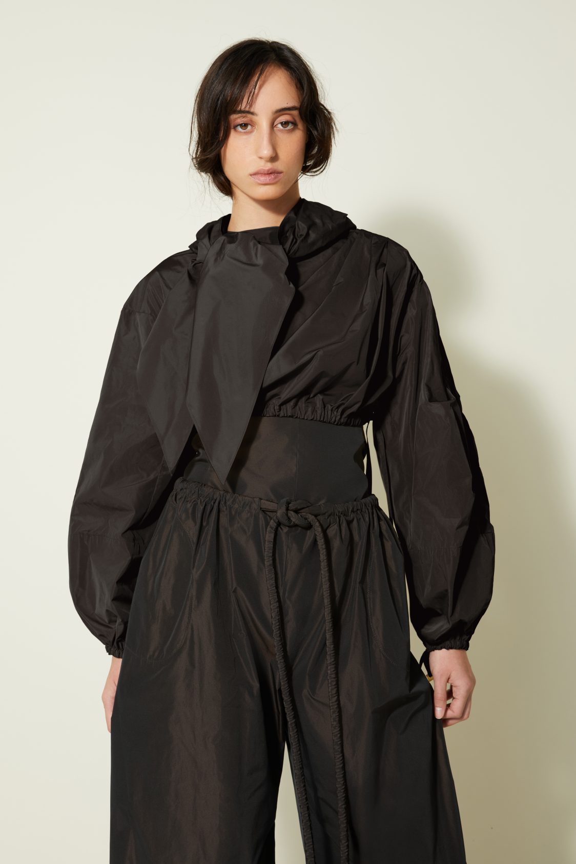 A more dressed-up, luxurious cropped version of our signature draped top, crafted here from a nylon taffeta.