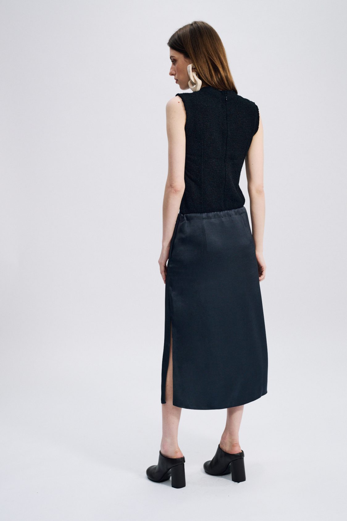 Skirt made from viscose Sattin. It’s very fluid and can be worn for a fancy outfit or on a day-to-day basis.