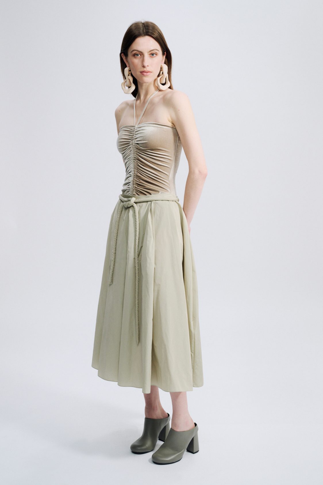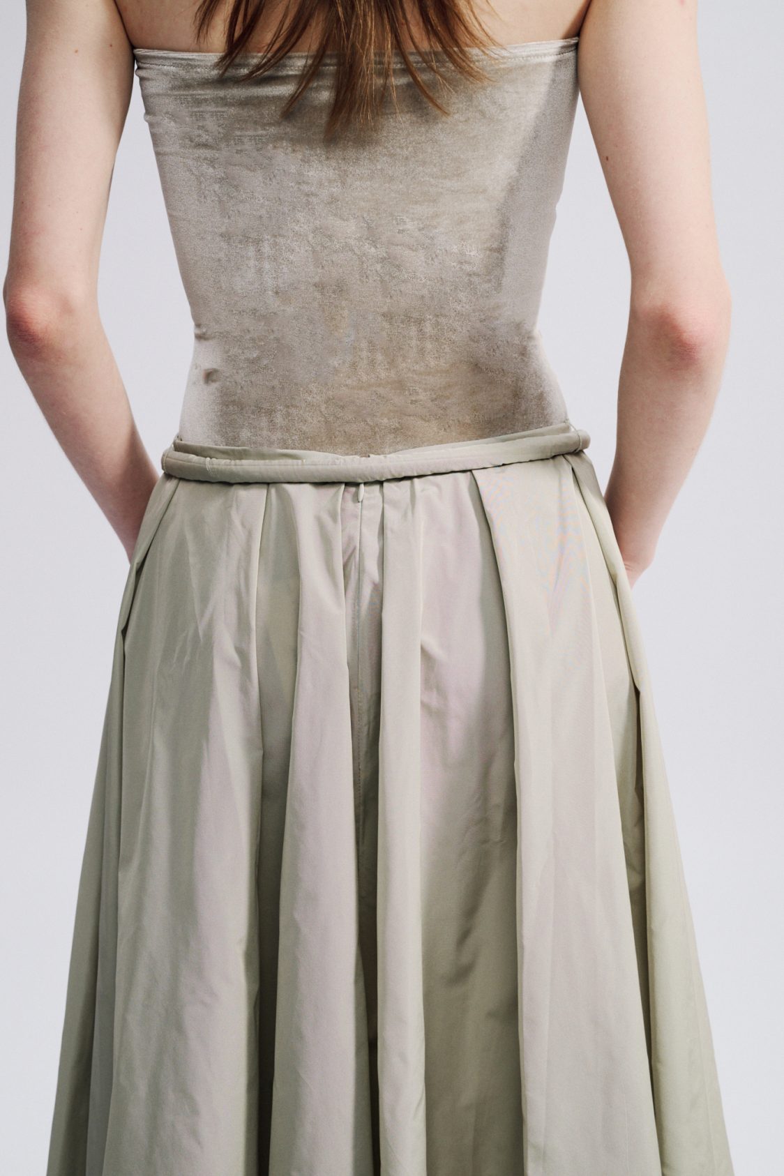 Long Skirt made from multiple fabric panels to create a beautiful circle shape. Can be worn with the matching shirt for a boyish trendy look.