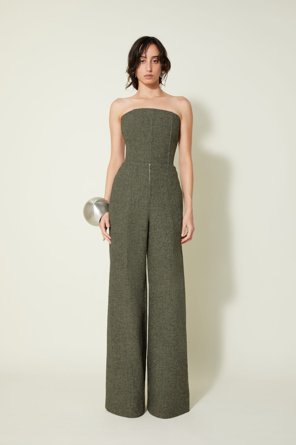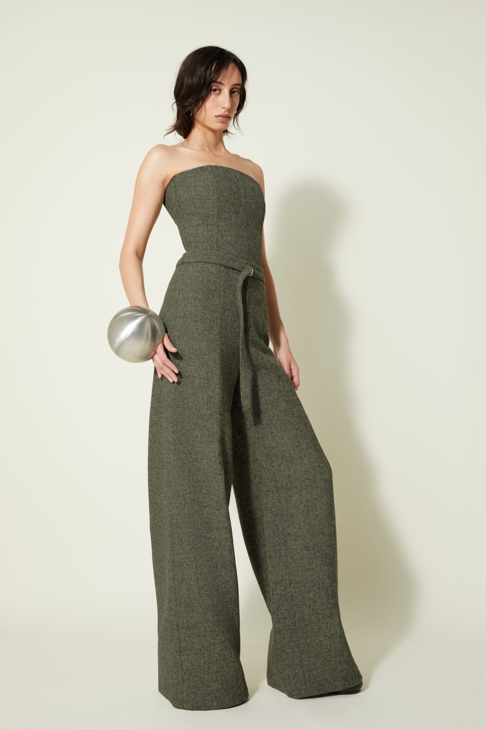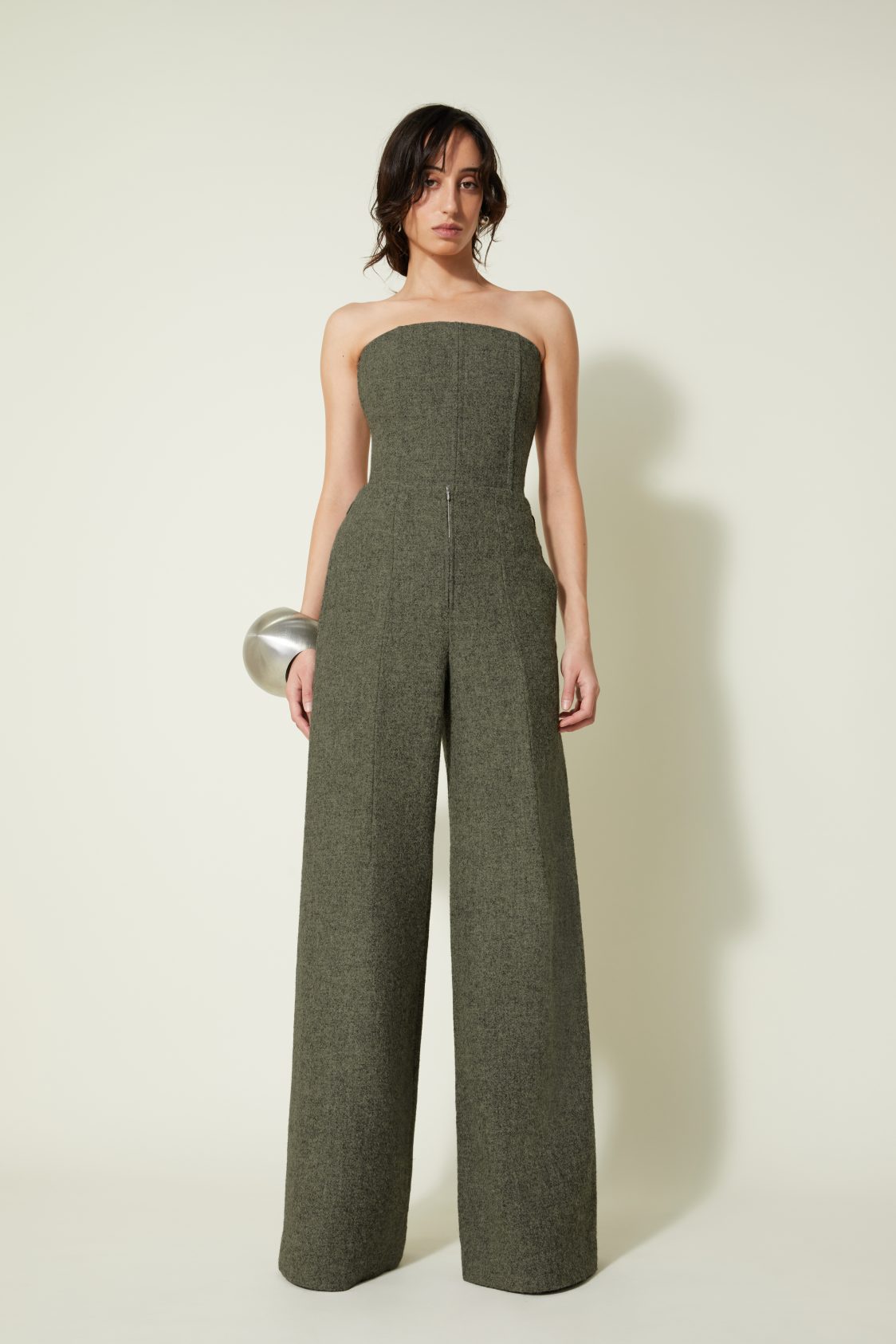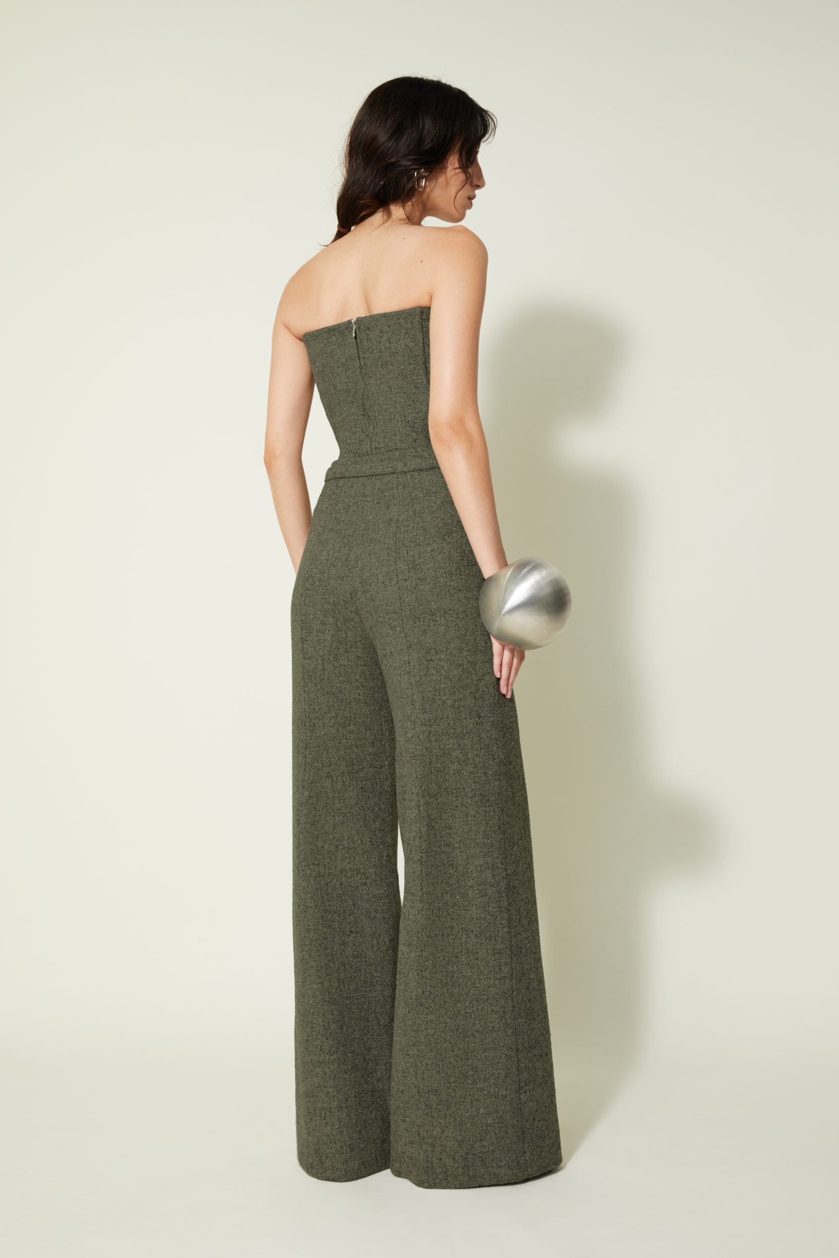 This high-waisted trouser embodies a structured yet effortless elegance. Crafted from genuine Harris Tweed pure virgin wool, it elongates the silhouette with its wide-leg cut. A matching belt accentuates the waist, while discreet in-seam pockets add functionality without disrupting the purity of the line.
