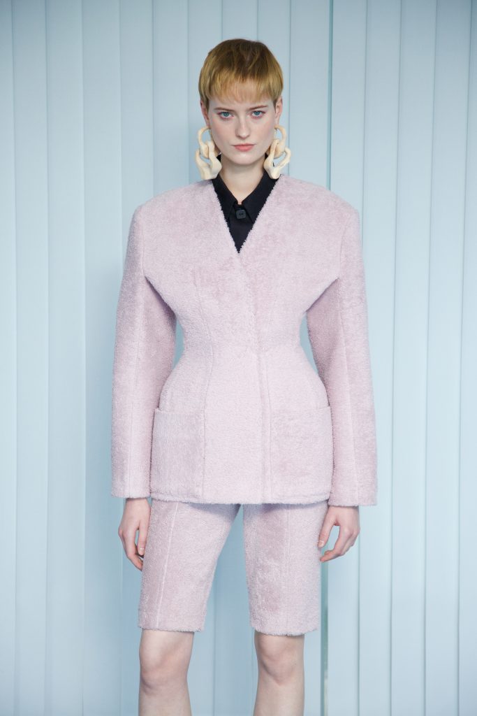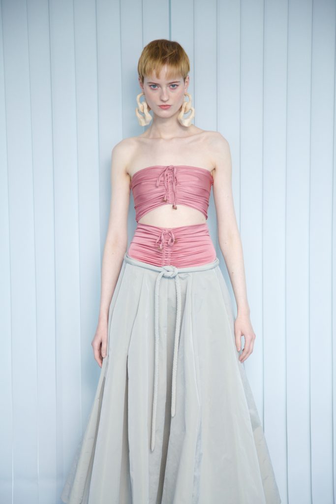 Véronique Leroy continues to plough the furrow of her cherished materials — terry cloth, mesh, ruched taffeta, cotton gabardine. Swimsuits are no longer just swimsuits; bodysuits and puffed briefs transcend their category. Shoulders stand proud, sculptural. Sleeves bloom into balloons. Cardigans sprout playful protrusions.