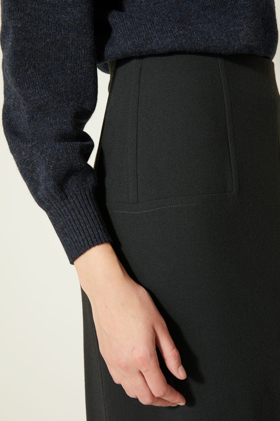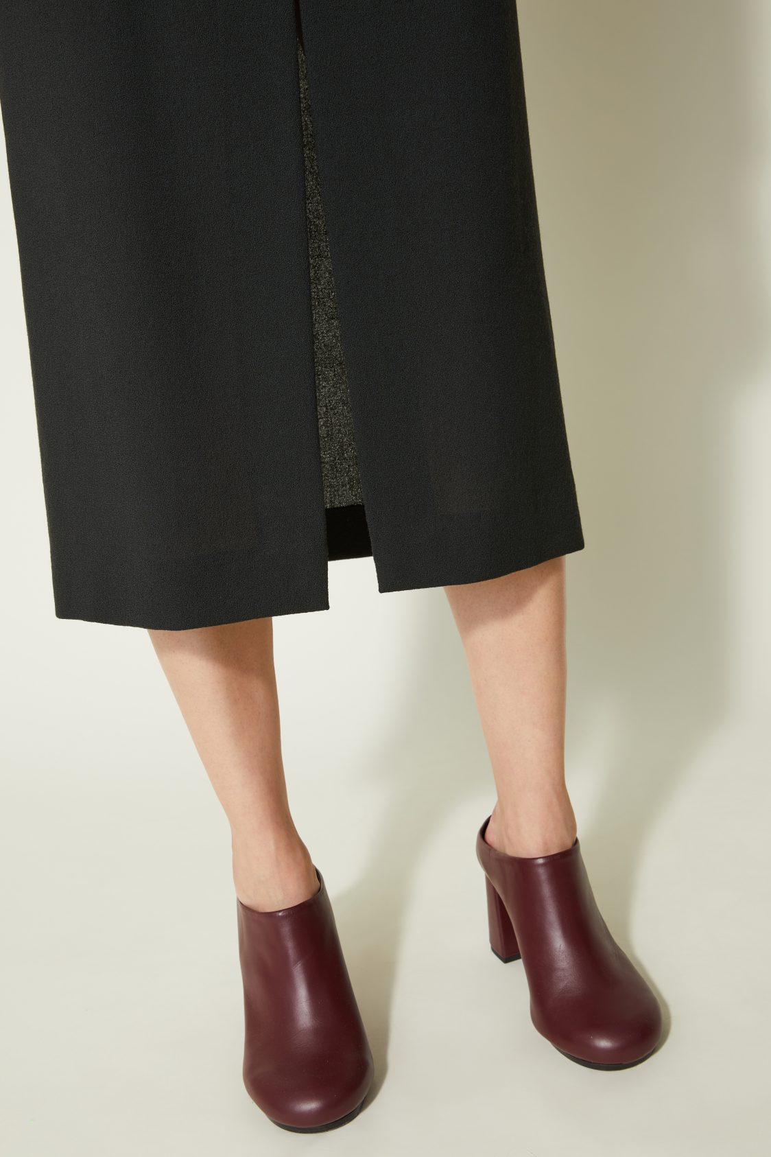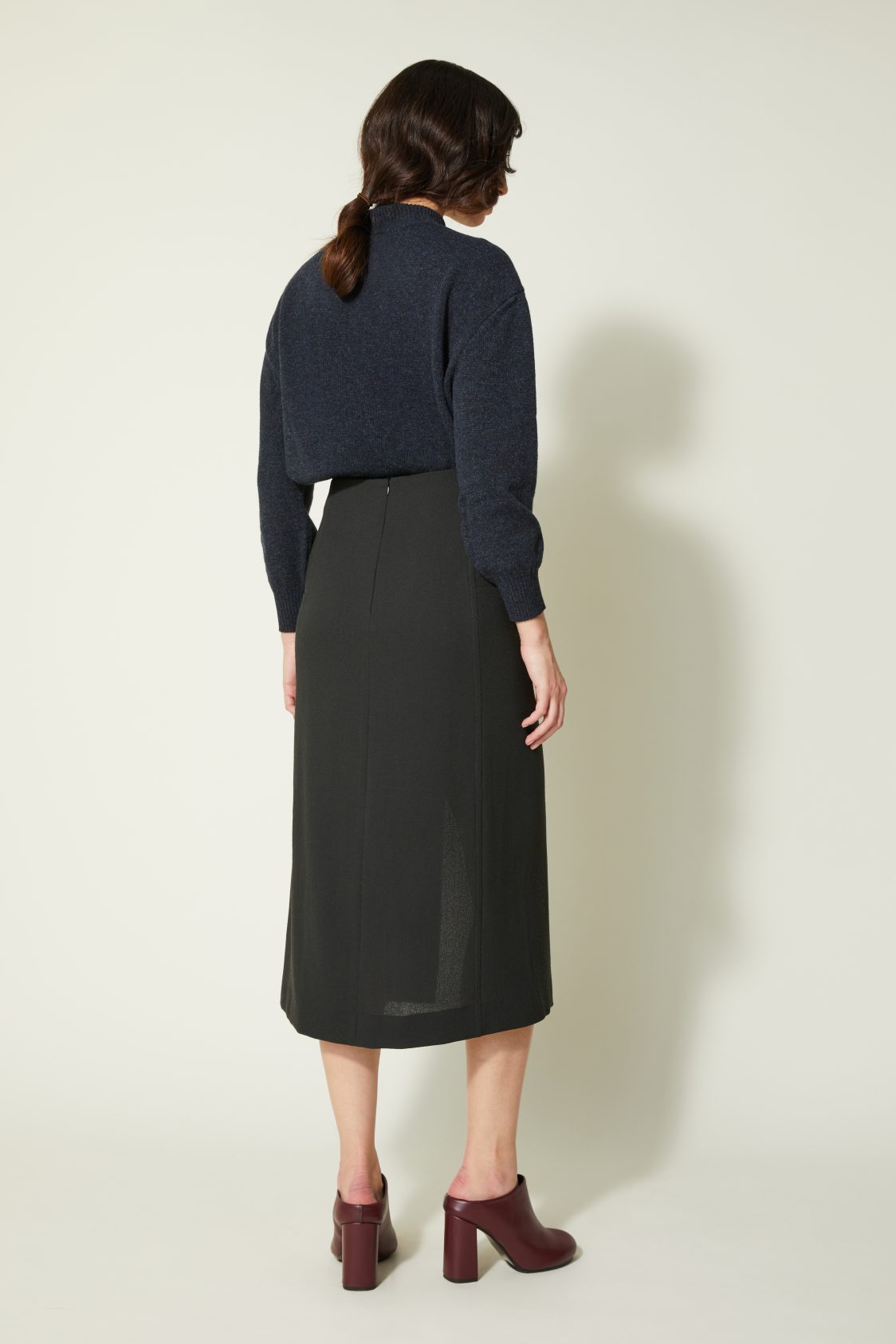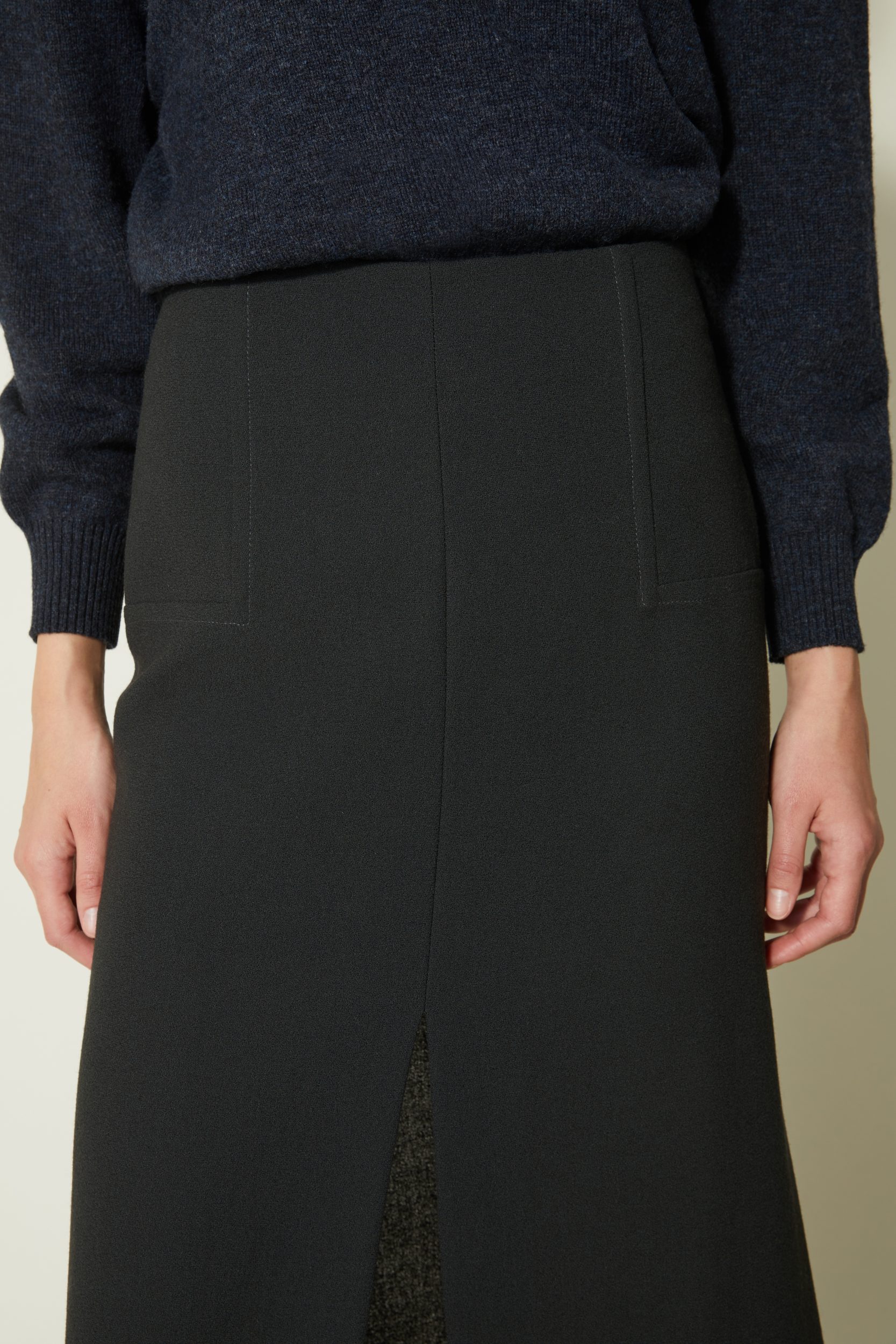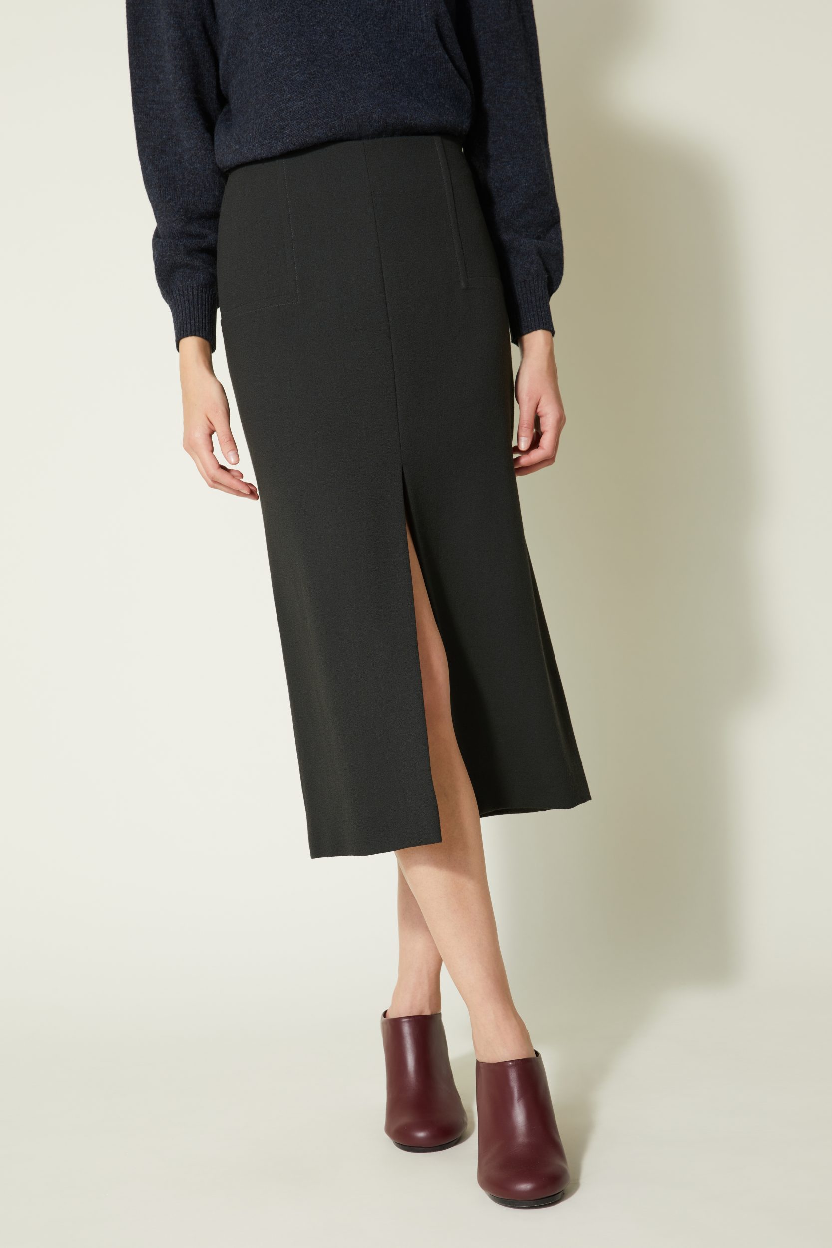 Coupe droite, longueur mi-mollet – Fente frontale – Crêpe de laine au tombé dense et fluide