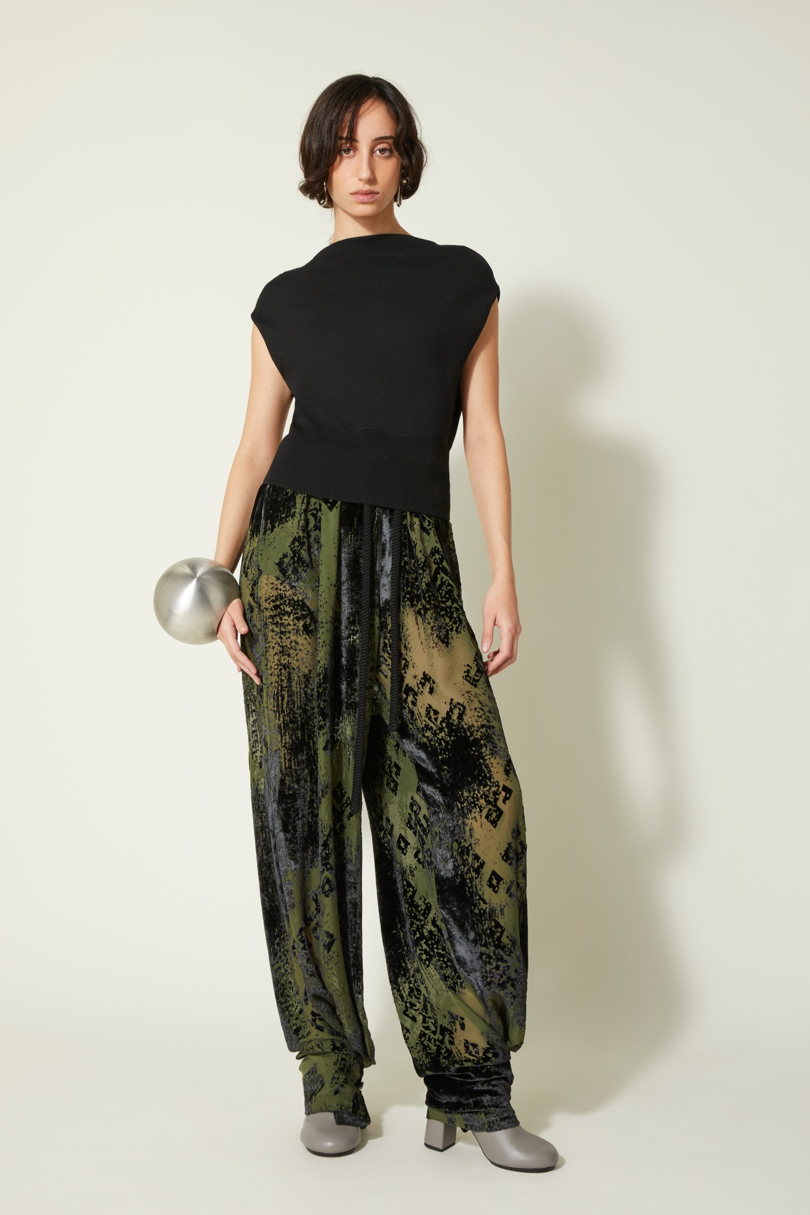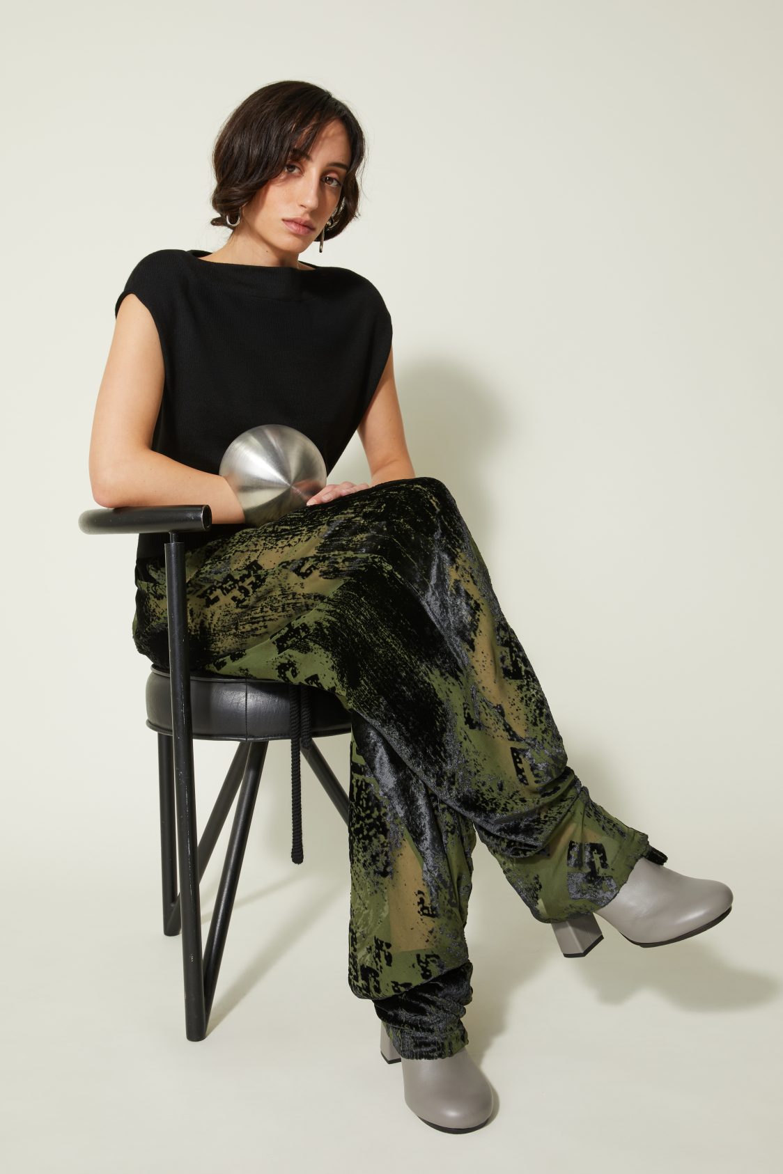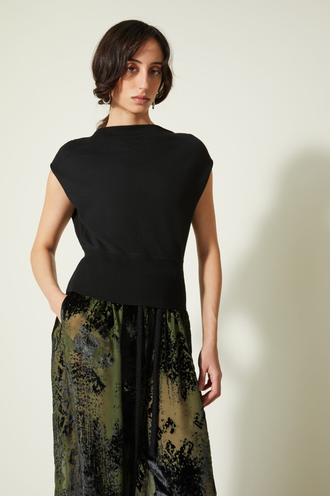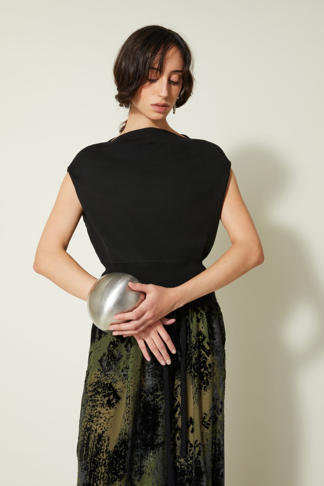 Tricoté en pure laine, ce pull à jauge fine s’impose comme un nouveau basique du vestiaire. Son col large, proche du bateau, dégage légèrement la ligne du cou. Le corps, volontairement souple, est structuré par un large bord-côte haut qui vient marquer la taille avec netteté.
